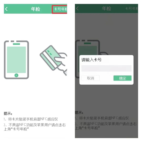 线上年检具体操作方法第一种:NFC年检(当安卓手机支持NFC时,推荐使用此方式年检;目前苹果手机不支持此方法)