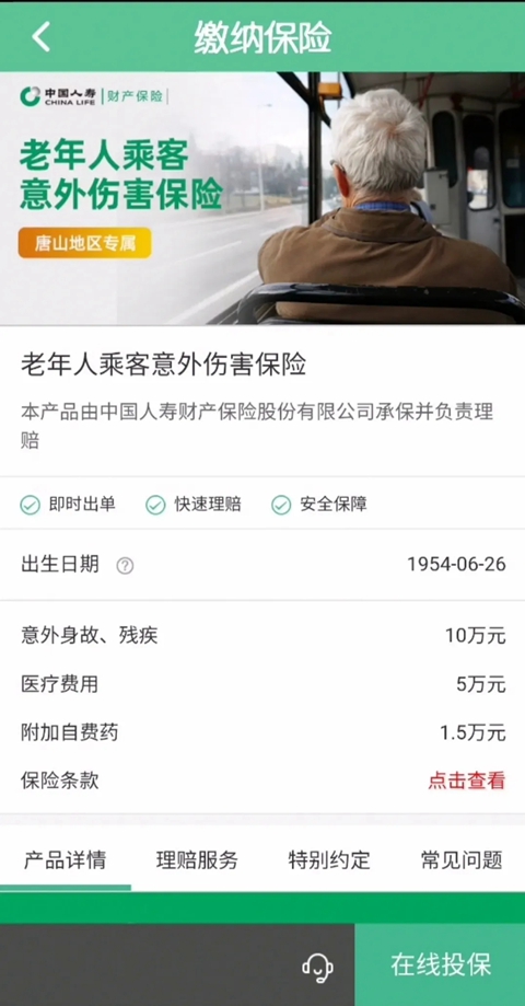 第二步:缴纳老年人乘客意外伤害保险