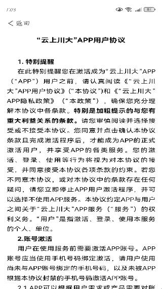 2、第一次使用,需要自定义浏览云上川大的用户协议。