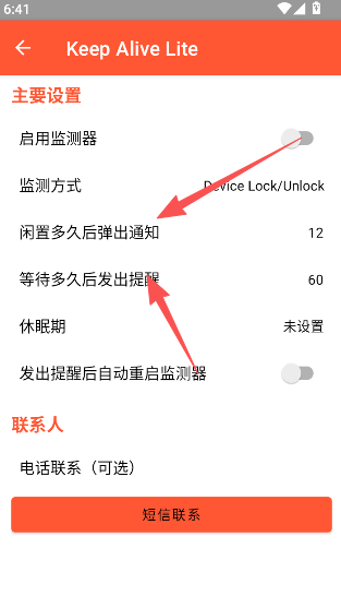 3、之后在应用的主要栏目,选择主要提醒开始设置就行,它会根据你所设置的电话或是短信联系方式来给出预警。