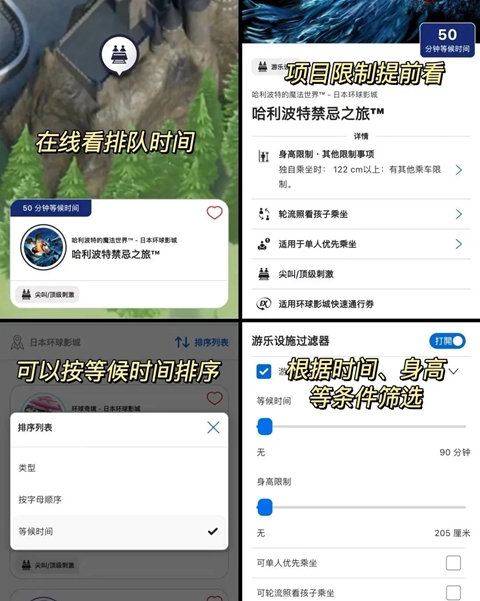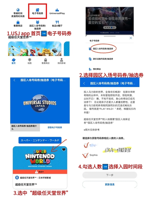 6. 目标锁定:超级任天堂世界园区人气超高,需要抽取整理券才能进入,其他园区一般无需抽券(特殊活动时哈利波特园区可能也需抽,以APP显示为准)。