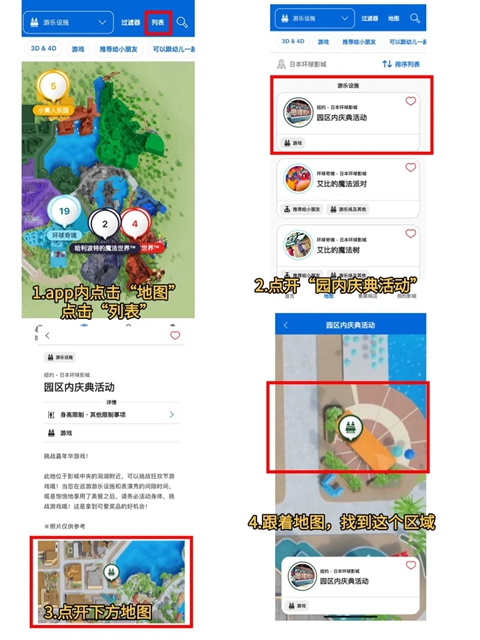 3、互动式园区地图:详细标注娱乐设施、餐厅、购物点,支持筛选与导航,轻松避免迷路。