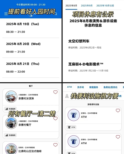 ③注意提前看好入园时间、项目休息公示,app上查看餐厅、便利设施、排队时间、项目限制都很方便~
