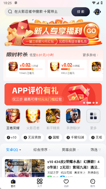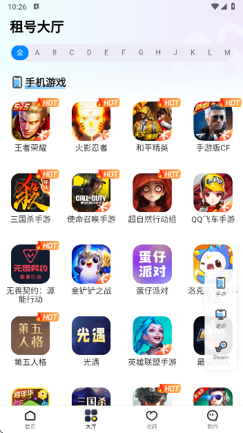 1、在本站下载安装飞鸟租号app打开,进入首页可以获取租号服务
