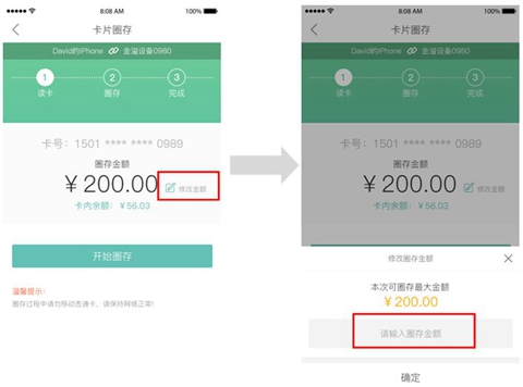 在读卡页面,点击【修改金额】,可修改圈存金额,在圈存金额输入框输入圈存金额,即可完成修改圈存金额操作;