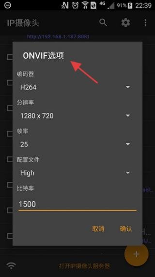 1、IP摄像头设置界面,ONVIF选项醒目,下方有编码器、分辨率等参数设置,可按需配置以优化摄像头性能。