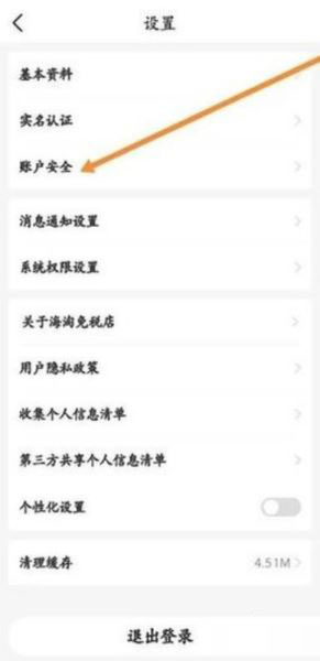 2、在设置栏目中,点击账户安全,进入详情部分。