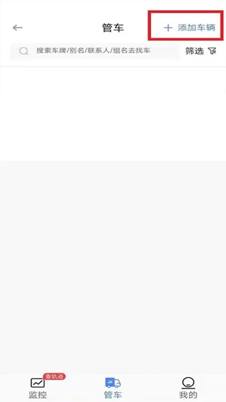 2、点击右上角添加车辆,这里添加的车辆也就是你想要查询行车轨迹的。