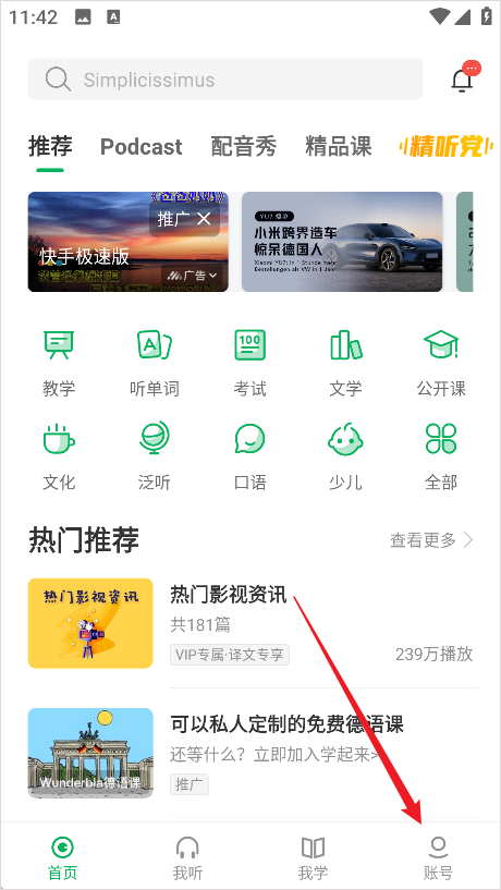 - 拥有每天更新的海量听力库,并独家提供智能语音高亮跟随功能