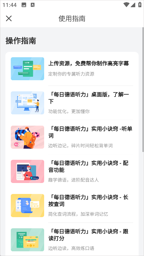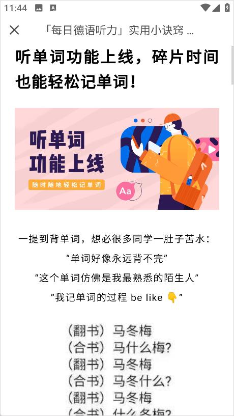 - 全新百科智能提示,让你训练听力的同时不知不觉增加德语词汇量