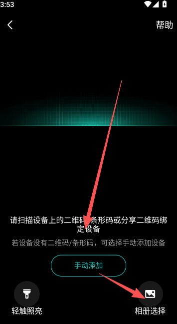 3、手动输入或是扫描二维码的方式完成设备连接。