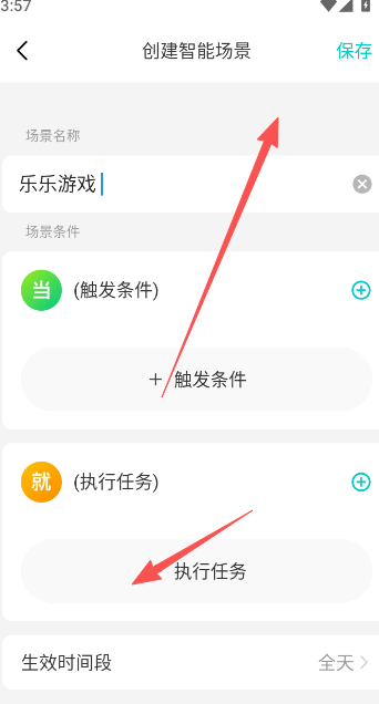 3、针对所创建的场景名称、场景条件以及执行任务等做明确编辑,完成后保存即可。