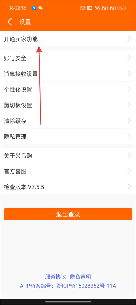 2、进到设置界面后,点击“开通卖家功能”