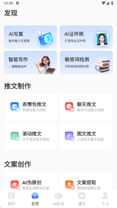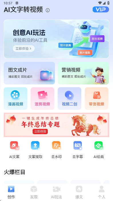1、在本站下载安装AI文字转视频app打开,进入首页开始创作