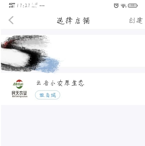 2、进入后,会出现“云谷小农原生态微商城”在次点击,出现您所经营的小区名称。