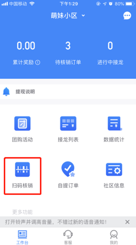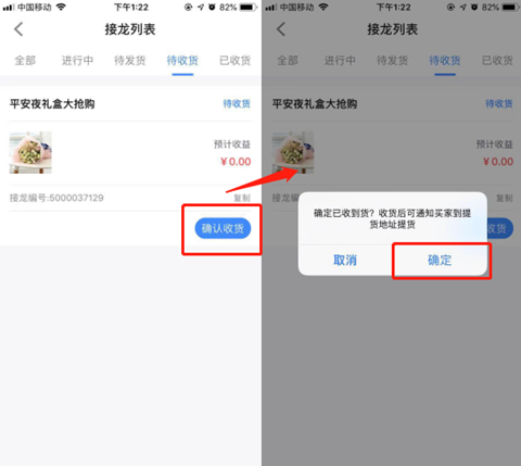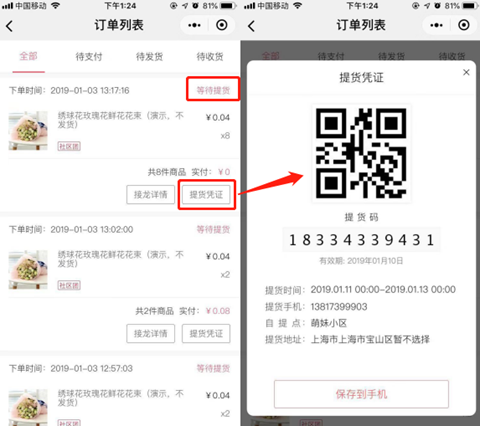 团长收到商品以及提货明细单后点击【确认收货】,可根据提货明细单提前拣货分配;团长确认收货后,买家订单的状态变为等待提货,买家可查看提货凭证;买家上门自提时,团长根据买家提供的提货凭证进行扫码核销。