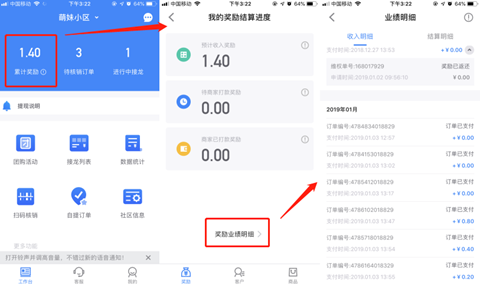 团长可通过累计奖励查看自己奖励结算进度,累计奖励包含:预计收入奖励(客户成功支付之后)、待商家打款奖励(订单过了维权期,但商家未打款)、商家已打款奖励(商家已打款至团长账户),支持查看奖励业绩明细。