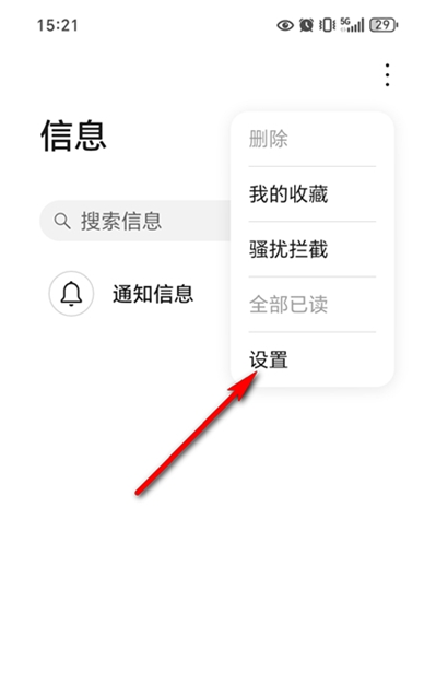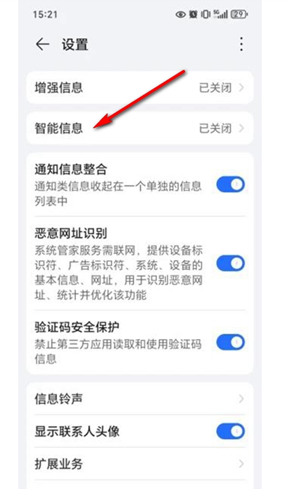 3、找到进入的设置页面内部的智能信息选项,然后就可以开始操作部分了。