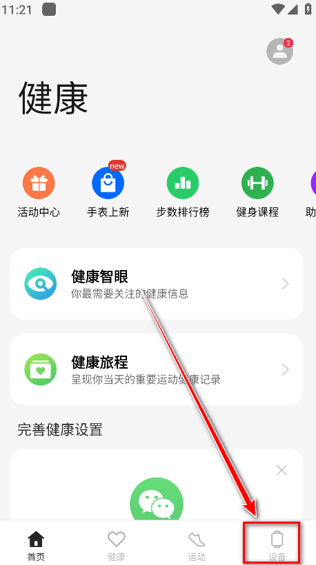 1.打开欢太健康,点击右下角设备。