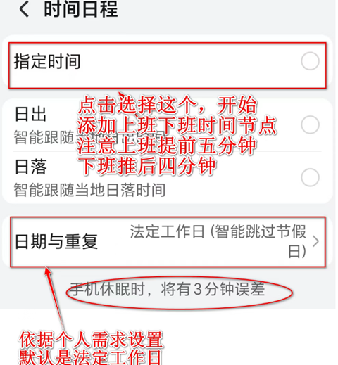 一,通过设置时间节点(上班时间前,下班时间后的时间节点),触发在指定时间节点,手机自动启动“钉钉”(等考勤打卡软件);