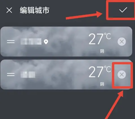 3、点击城市名最前边的图标,或是长按词条进行删除操作。