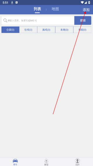 1、进入汽车在线gps定位平台,选择下方爱车,点击右上角添加