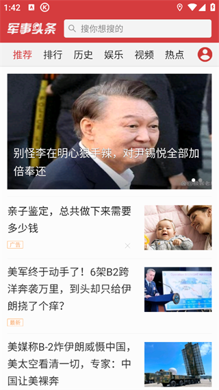 你还可以通过关键词搜索自己感兴趣的内容,帮助用户找到感兴趣的军事资讯;