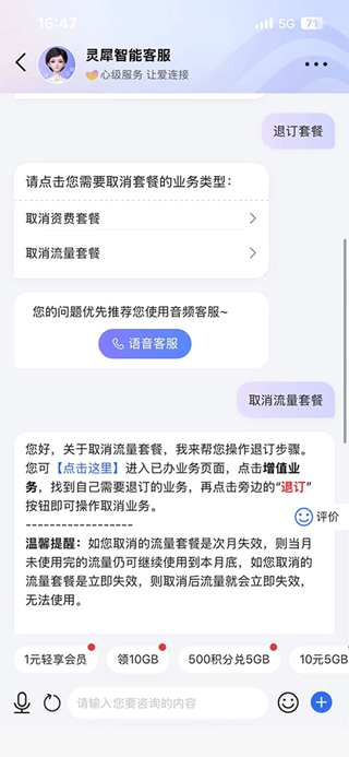 套餐变更便捷办:APP内“分类→套餐→套餐变更”3步操作,新套餐生效后原套餐自动失效,省时省力。
