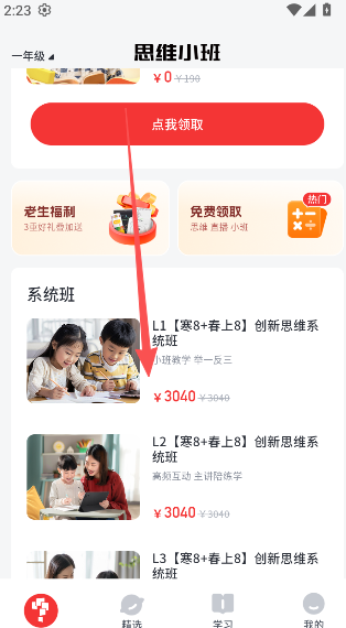 1、下滑首页找到下方的系统班课程版块,进入查看详情。