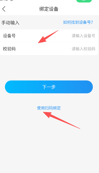 如果扫描二维码无法成功的话,可以点击下方的手动输入,输入手表的设备号和校检码进行连接。