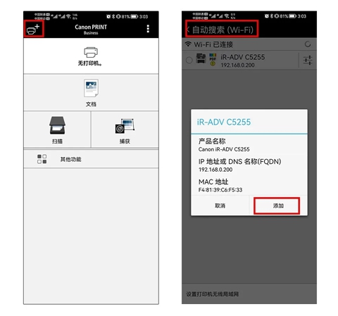 安装好后,打开APP,点击左上角添加打印机