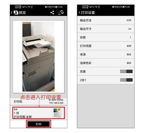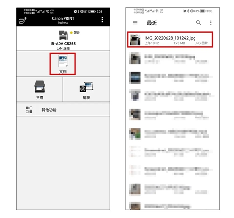 在佳能打印APP中打印文件: