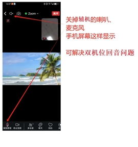 若双机位发生啸叫或回音,请将其中一个机位(辅机)的麦克风和左上角小喇叭关闭,就可以解决问题。