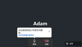 (2)请检查对方是否连接了设备音频 , 麦克风是否被静音 ,如果麦克风上有 一条红色的斜杠 , 说明被静音 ,点击 “ 麦克风 ” 图标,解除静音即可,如图所示: