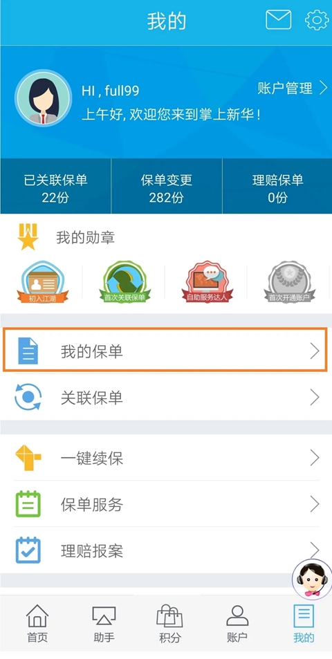 2.选择“我的保单”。