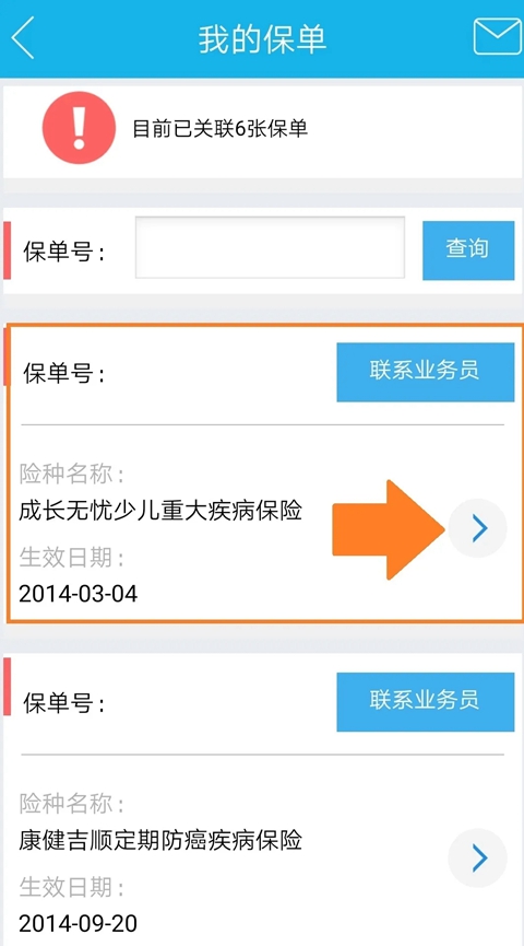 4.选择需要查询的保单。