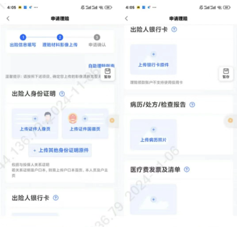 3、理赔材料影像上传。按照要求,需对证件和资料原件拍照,不能对着手机或电脑的图片拍照。