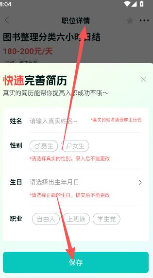 4、完善个人真实信息,上传个人简历信息部分,之后就可以正式开始兼职了。