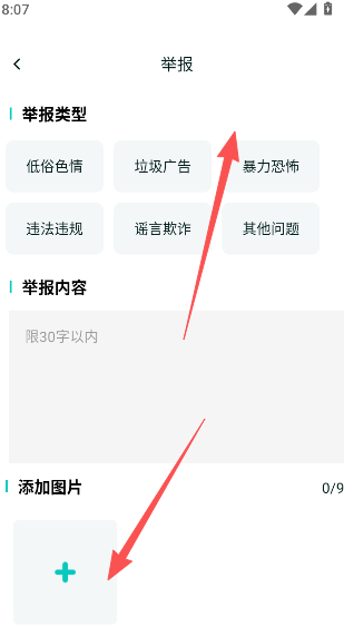 2、添加举报类型、详细描述以及图片部分,完成举报。