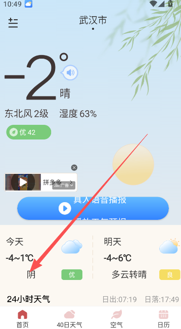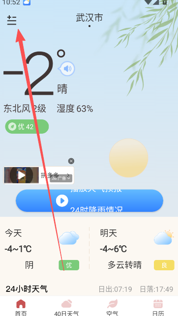 2、首页,可以查看最新天气情况,下滑封面展示还可以查看更多。