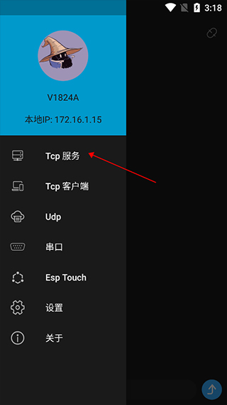 2、然后选择需要调试的网络设备(这里以本机tcp服务器有参考)