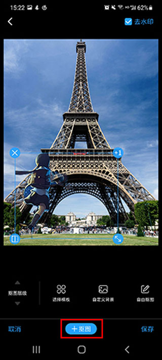 3、系统会自动抠出一张人像,你也可以点击下方抠图按钮自己抠图。