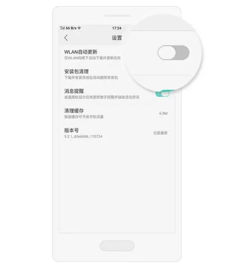 2、打开【软件商店】, 点击【我的】->【设置】将【WLAN自动更新】按钮关闭