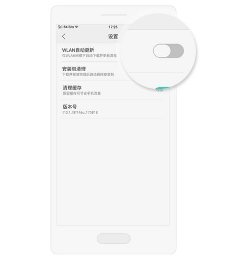 3、打开【游戏中心】, 点击【我的】->【设置】将【WLAN自动更新】按钮关闭