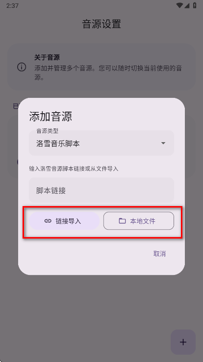 3、选择或点击链接导入、本地文件。