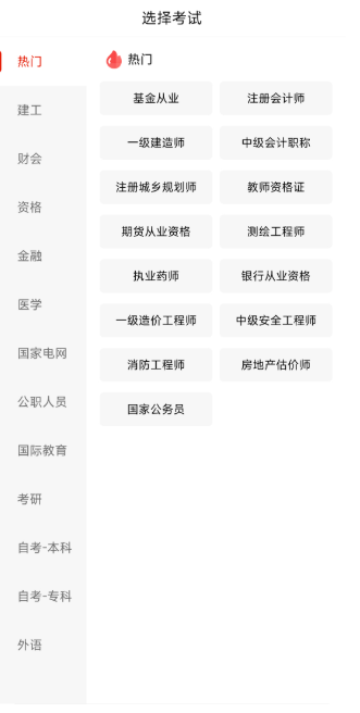 1、在本站下载安装好app后,打开它你可以看到下面页面。所有的科目类型都在这里,你可以选择需要的考试科目。