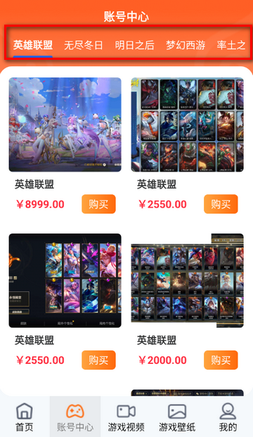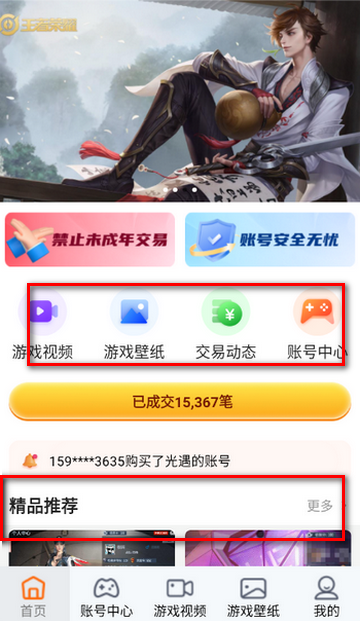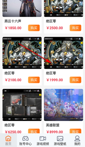 2、进入首页,点击你想要购买的游戏账号