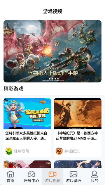 3、点击账号中心,查看各类游戏的账号登