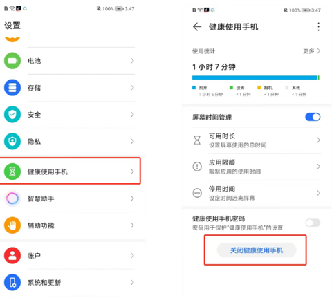 第二点:关掉孩子手机当中的健康使用手机/平板