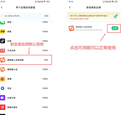 新安装应用:新安装应用默认禁用,点击可用就可以正常使用